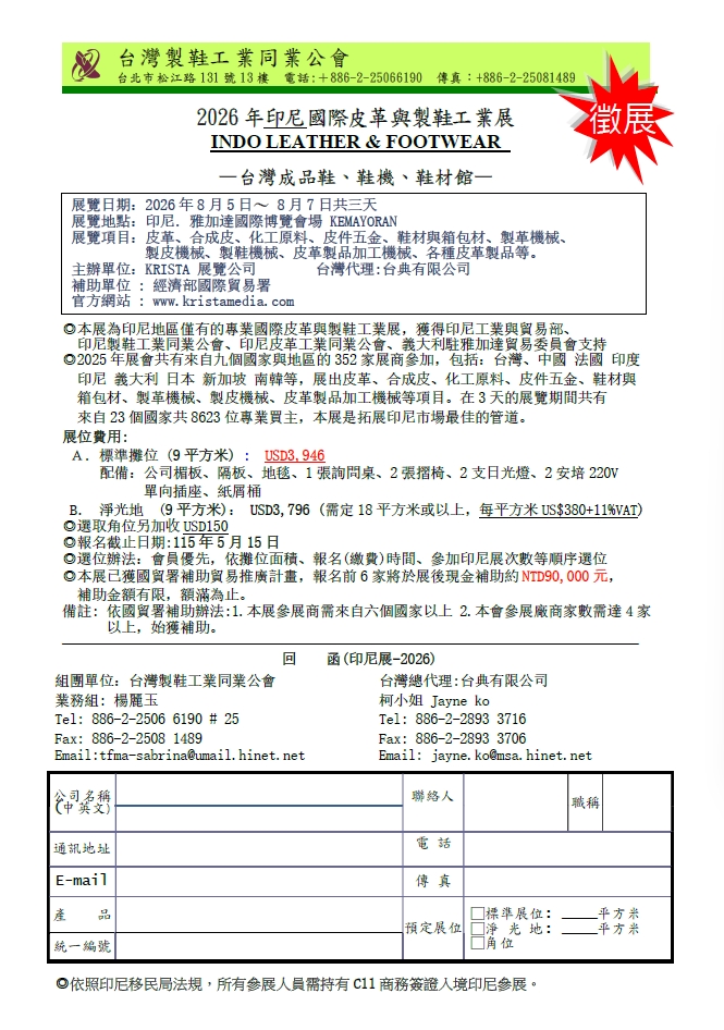 > 展覽拓銷 > 徵展通知 > 2026 8/5-8/7 印尼國際皮革與製鞋工業展